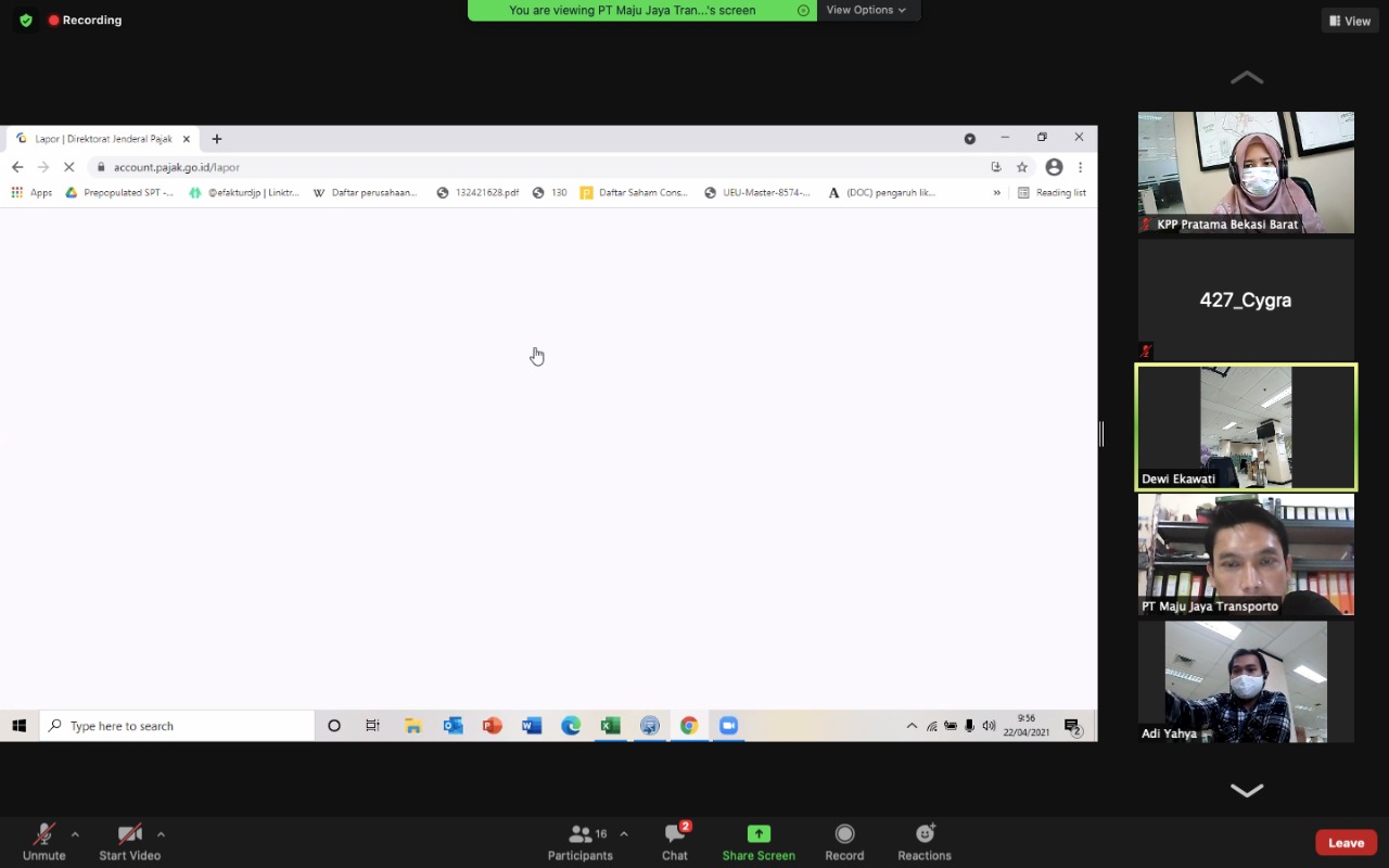 Kantor Pelayanan Pajak (KPP) Pratama Bekasi Barat mengajak pelaku UMKM untuk memahami tata cara Pelaporan SPT Tahunan Badan. Hal tersebut dituangkan dalam kegiatan kelas pajak yang diadakan secara daring dari gedung KPP Pratama Bekasi Barat (Kamis, 24/4).