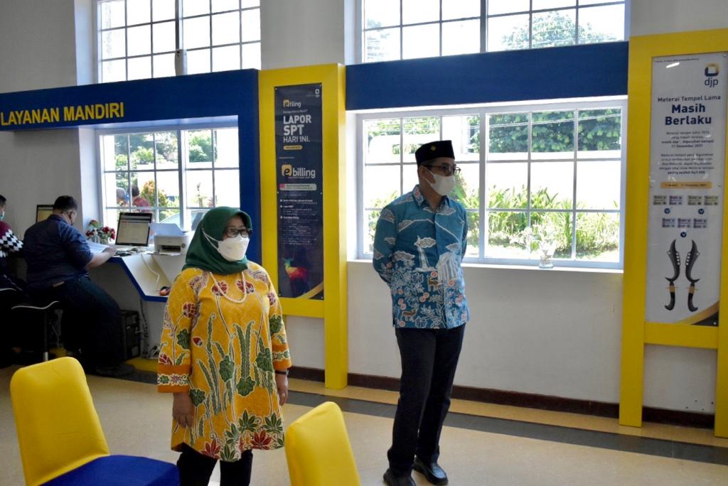 Didampingi oleh Kepala Kantor Wilayah Direktorat Jenderal Pajak (Kanwil DJP) Jawa Barat III Catur Rini Widosari dan Kepala KPP Pratama Bogor Albert Rinus Halomoan Saragi Siallagan, Suryo memperhatikan situasi pelayanan tatap muka kepada wajib pajak. Suryo juga memastikan sarana layanan seperti loket TPT, loket helpdesk, layanan mandiri, ruang konsultasi dan sarana lainnya.