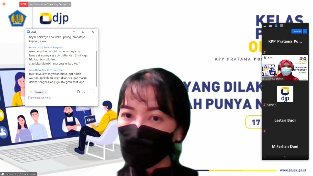 Acara yang diikuti oleh 14 wajib pajak baru yang terdaftar di tahun 2021 ini berlangsung dalam dua sesi yaitu pada pukul 09.00 WIB hingga pukul 11.00 WIB dan pukul 14.00 WIB hingga pukul 16.00 WIB.