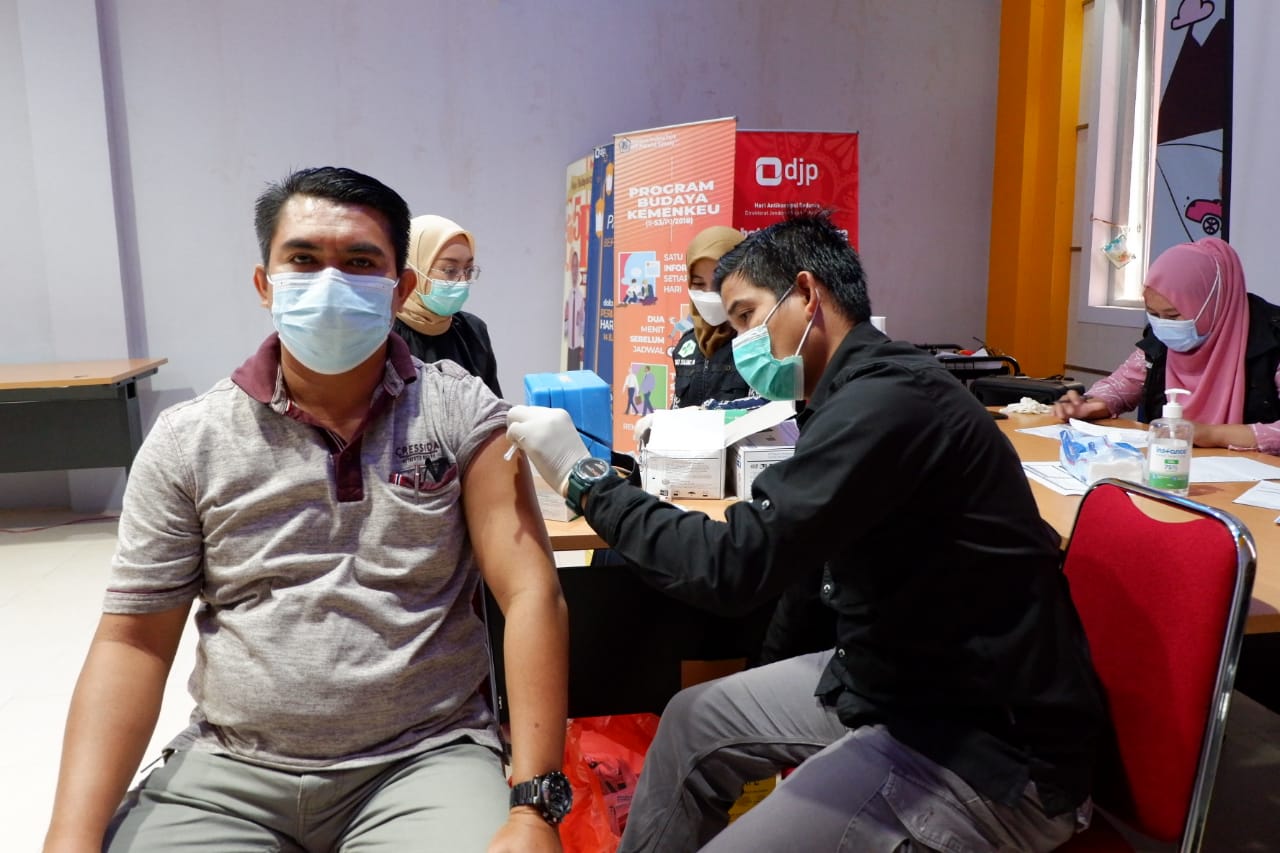 Kantor Pelayanan Pajak (KPP) Pratama Sintang bersama Puskesmas Tanjung Puri Kab. Sintang melaksanakan Vaksinasi Covid-19 di Aula KPP Pratama Sintang, Sintang (Kamis, 8/7). Kegiatan ini merupakan vaksinasi tahap ke dua yang ditujukan untuk pegawai KPP Pratama Sintang bersama masyarakat sekitar.