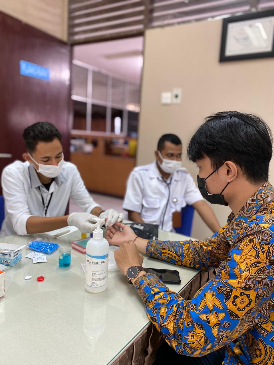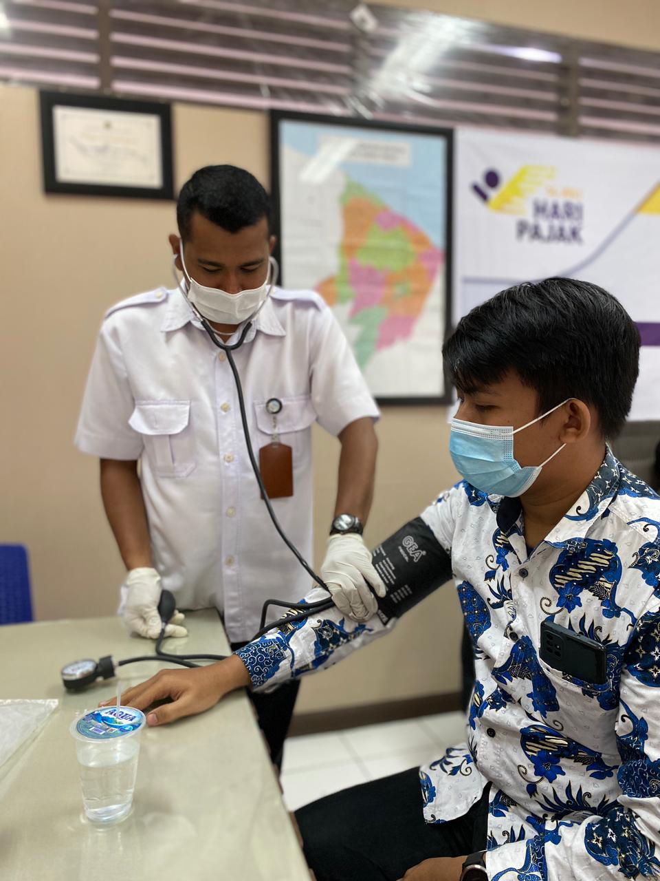 Pegawai KPP Tebing Tinggi yang ingin mendonorkn darahnya akan di cek tensinya terlebih dahulu kemudian apabila tensinya normal akan dicek hemoglobinnya.