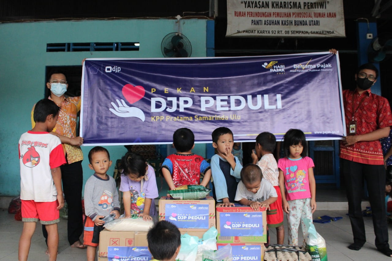 Kantor Pelayanan Pajak (KPP) Pratama Samarinda Ulu memberikan bantuan sembako kepada Panti Asuhan Yayasan Bunda Utari di daerah Bengkuring, Sempaja Timur, Samarinda (Jumat, 9/7).