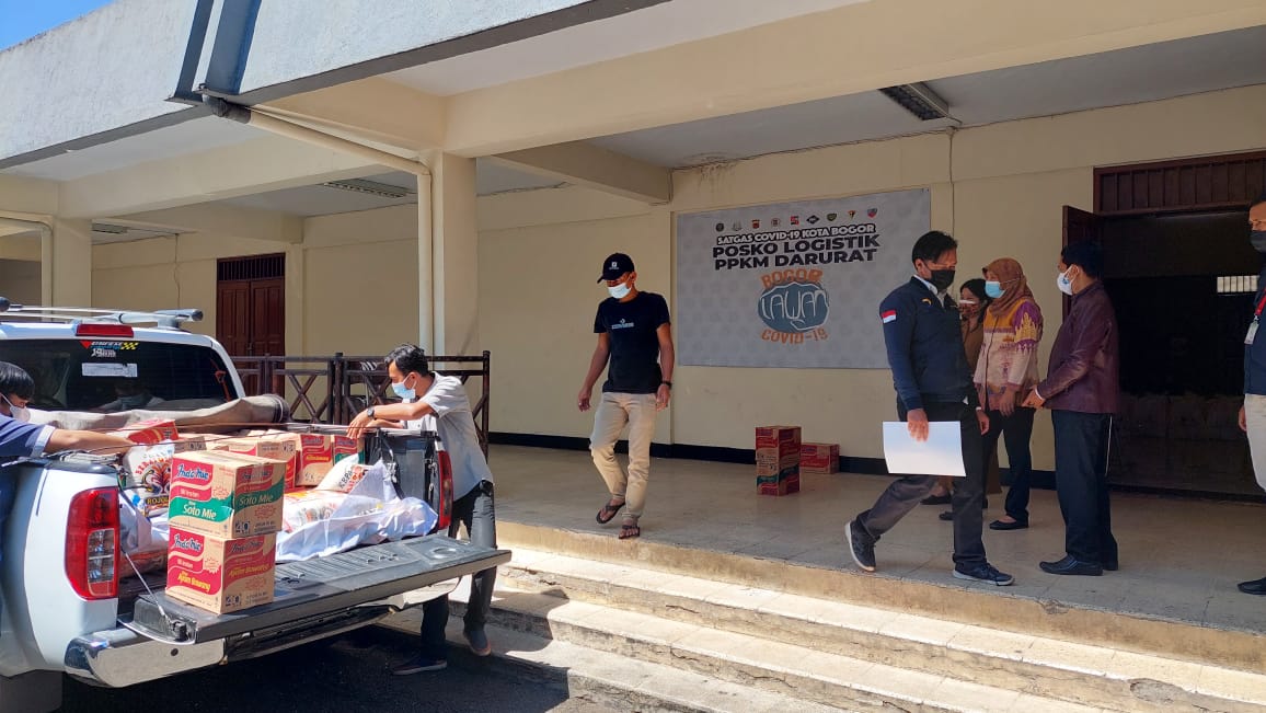Kantor Pelayanan Pajak (KPP) Pratama Bogor kirimkan bantuaan logistik kepada Posko Pemberlakuan Pembatasan Kegiatan Masyarakat (PPKM) Darurat yang dikelola oleh Satgas Covid-19 Kota Bogor di Gedung Wanita, Jalan Sudirman, Kota Bogor (Senin, 26/7).
