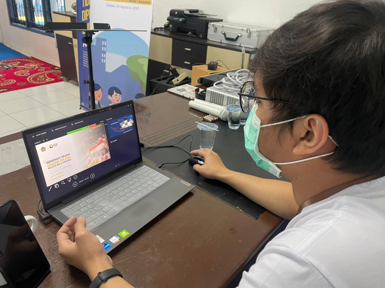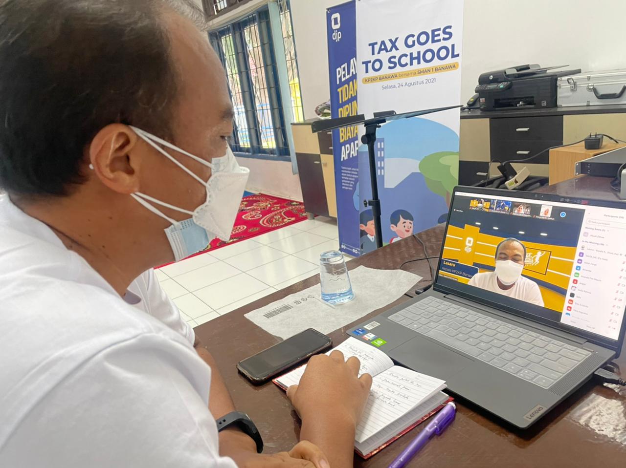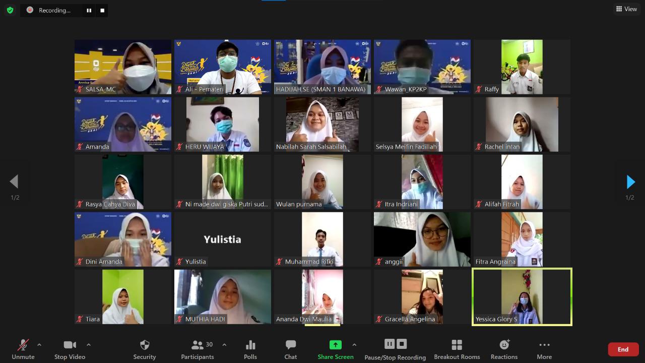 Kantor Pelayanan, Penyuluhan, dan Konsultasi Perpajakan (KP2KP) Banawa bersama Sekolah Menengah Atas (SMA) Negeri 1 Banawa menyelenggarakan kegiatan Pajak Bertutur 2021 secara daring melalui aplikasi Zoom Clouds Meeting di Banawa, kabupaten Donggala, Sulawesi Tengah (Rabu, 25/8).