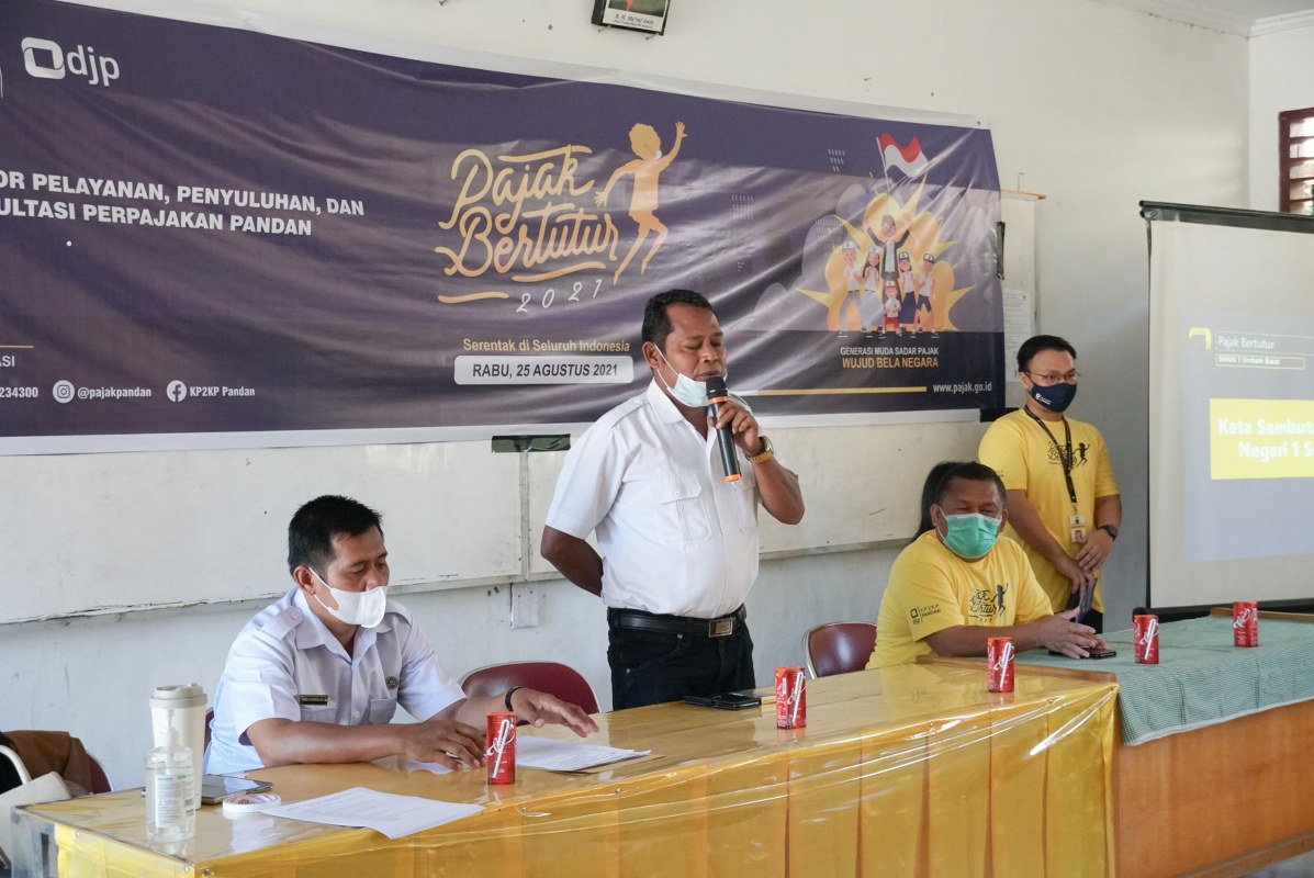 Kantor Pelayanan, Penyuluhan, dan Konsultasi Perpajakan (KP2KP) Pandan menyelenggarakan kegiatan Pajak Bertutur 2021 di SMAN1 Sorkam Barat, Tapanuli Tengah, Sumatera Utara (Rabu, 25/8).