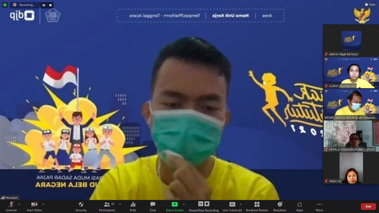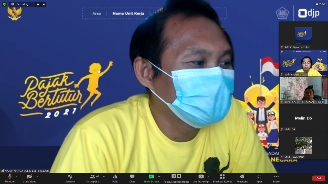 Kantor Pelayanan, Penyuluhan, dan Konsultasi Perpajakan (KP2KP) Nanga Bulik melaksanakan kegiatan Pajak Bertutur 2021 bersama dengan Sekolah Menengah Atas Negeri (SMAN) 1 Bulik secara daring di Lamandau (Rabu, 25/8).