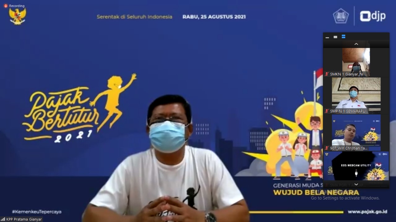 Kantor Pelayanan Pajak (KPP) Pratama Gianyar bersama Kantor Pelayanan Penyuluhan dan Konsultasi Perpajakan (KP2KP) Ubud dan KP2KP Amlapura melaksanakan kegiatan pajak bertutur 2021 secara daring di Gianyar, Bali (Rabu, 25/8).