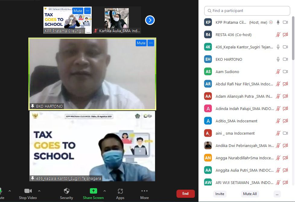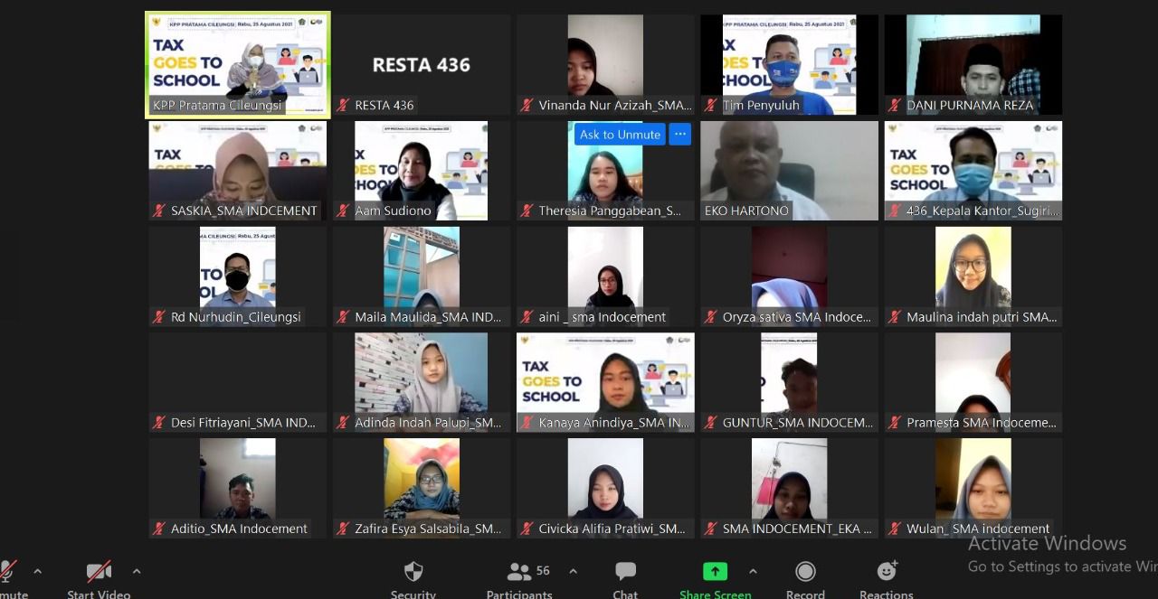 Dalam rangka program Pajak Bertutur, Kantor Pelayanan Pajak (KPP) Pratama Cileungsi melaksanakan kegiatan Tax Goes To School (TGTS) bersama Sekolah Menengah Atas (SMA) Indocement. Kegiatan yang bertema “Generasi Muda Sadar Pajak Wujud Bela Negara” ini dilaksanakan secara daring. Kabupaten Bogor, (Rabu, 25/8).