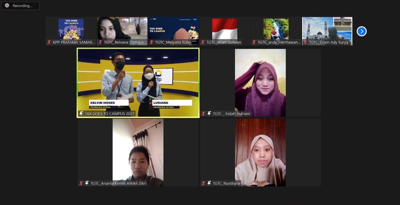 Kantor Pelayanan Pajak (KPP) Pratama Samarinda Ulu mengadakan kegiatan Tax Goes to Campus (TGTC) 2021 dengan tema "Generasi Muda Sadar Pajak" bersama Universitas Muhammadiyah Kalimantan Timur (UMKT) secara daring di Kota Samarinda (Rabu, 6/10).