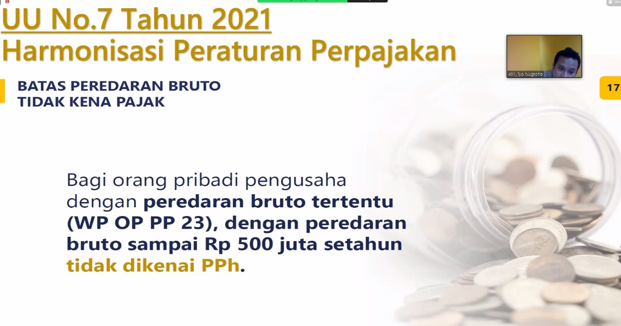 Kantor Pelayanan Pajak (KPP) Pratama Tigaraksa menyelenggarakan Kelas Pajak Online dengan tema "Kewajiban Perpajakan Wajib Pajak UMKM dan Pelaporan SPT Tahunan PPh Orang Pribadi". Kegiatan tersebut dilaksanakan secara daring melalui aplikasi Zoom Cloud Meeting di ruang Penyuluh Pajak KPP Pratama Tigaraksa, Tangerang (Kamis, 25/11).
