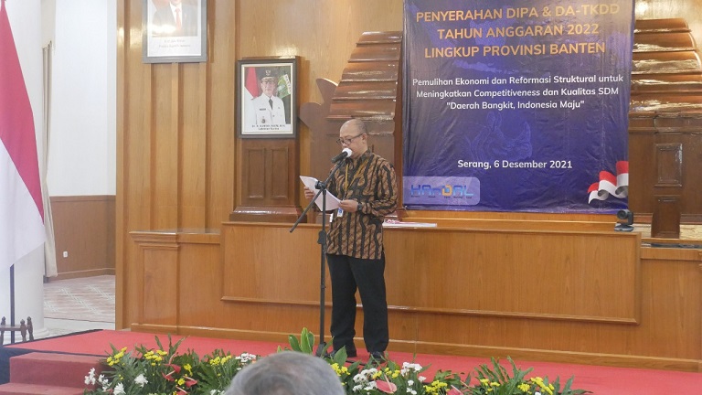Perwakilan Kanwil DJP Banten Alexander Ginting menghadiri penyerahan Daftar Isian Pelaksanaan Anggaran (DIPA) dan Dana Transfer ke Daerah dan Dana Desa (TKDD) Tahun 2022, di Pendopo Lama Gubernur Banten, Senin (05/12).