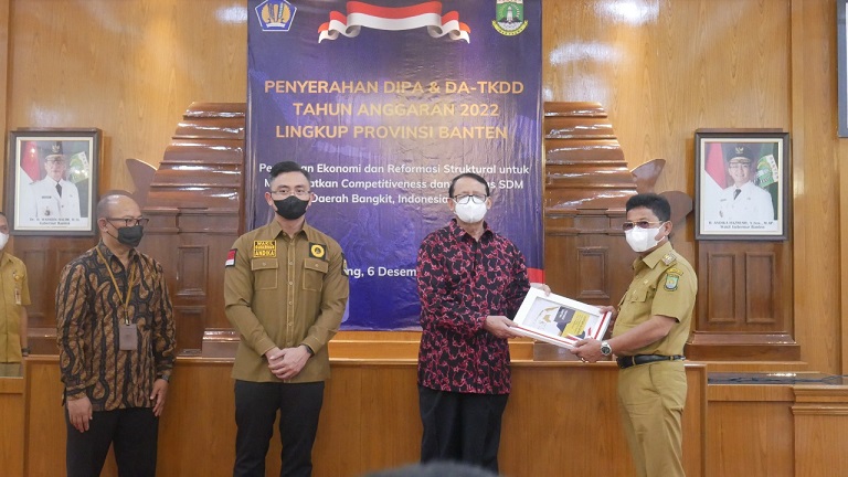 Acara penyerahan DIPA dan TKDD diserahkan langsung oleh Kepala Kanwil DJPB Banten Ade Rohman kepada Gubernur Banten Wahidin Halim yang disaksikan juga oleh Wakil Gubernur, serta perwakilan Kementerian Keuangan Provinsi Banten.