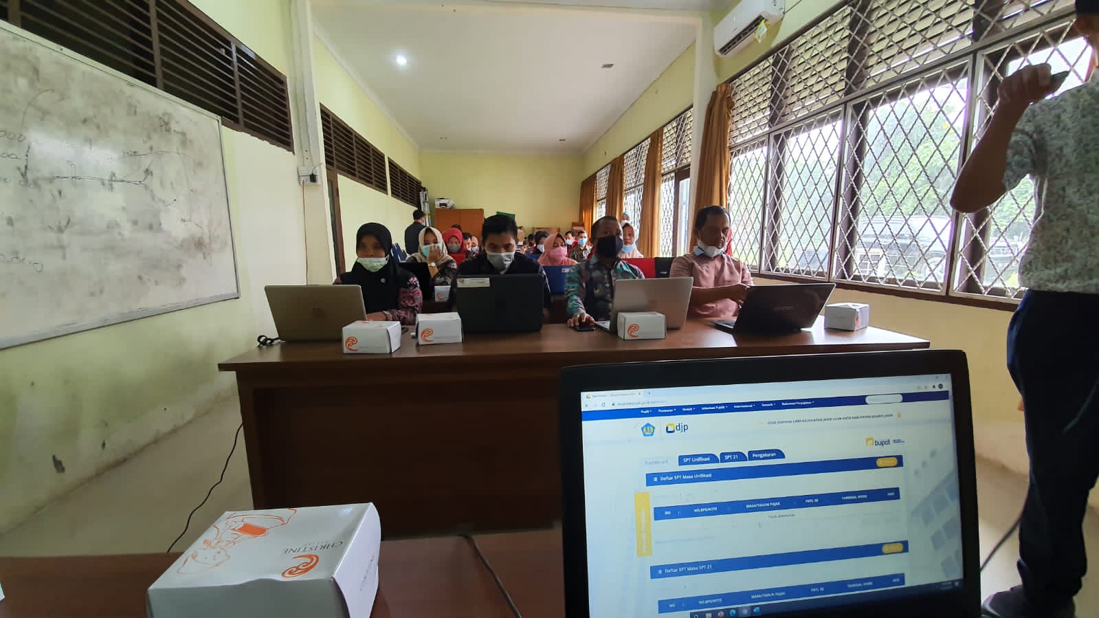 Kantor Pelayanan Pajak (KPP) Pratama Jambi Telanaipura bersama Kantor Pelayanan, Penyuluhan, dan Konsultasi Perpajakan (KP2KP) Sengeti melaksanakan kegiatan bimbingan teknis implementasi aplikasi e-bupot di Kantor Dinas Pemberdayaan Masyarakat Desa Kabupaten Muaro Jambi (Kamis, 16/12).