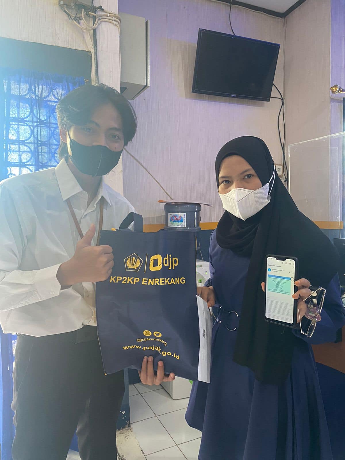 Kantor Pelayanan, Penyuluhan, dan Konsultasi Perpajakan (KP2KP) Enrekang membagikan kalender kepada wajib pajak yang telah melapor SPT Tahunannya lebih awal melalui e-filing di KP2KP Enrekang (Senin, 31/1). Apresiasi ini memiliki tujuan yaitu rasa berterimakasih KP2KP Enrekang kepada wajib pajak yang telah melaksanakan kewajibannya.