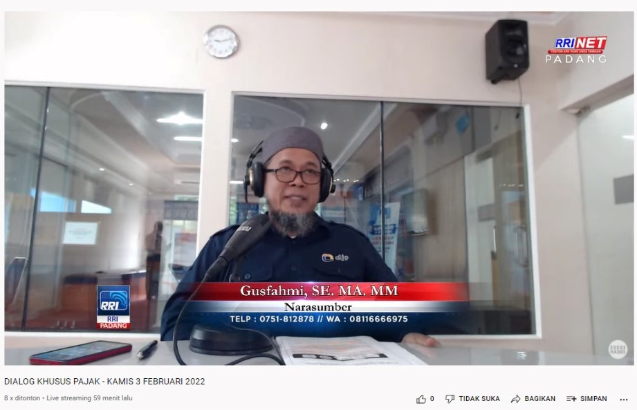 Kanwil DJP Sumatera Barat dan Jambi melalui Fungsional Penyuluh Pajak Ahli Madya, Gusfahmi melaksanakan dialog perpajakan yang membahas tentang pengertian dan manfaat Program Pengungkapan Sukarela ditemani oleh penyiar RRI Padang, Rita Ismael.