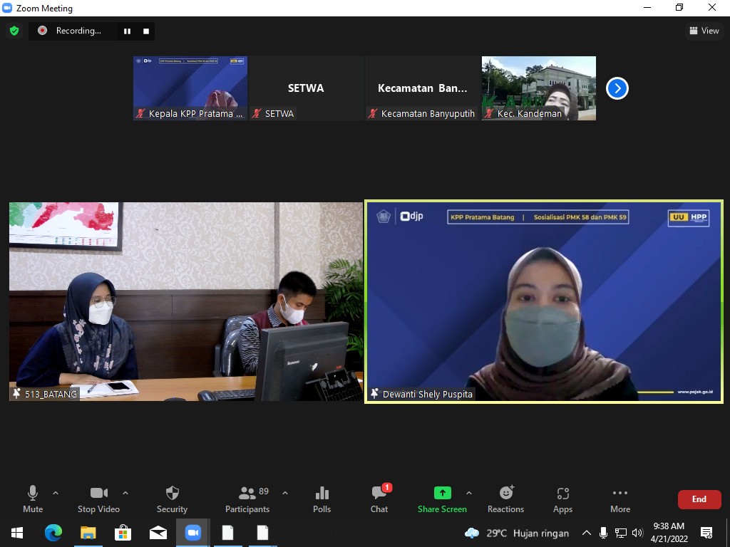 Sosialisasi yang dihadiri oleh 93 bendahara dan operator pajak Instansi Pemerintah Daerah, Instansi Pemerintah Desa, dan Instansi Pemerintah Pusat diadakan secara luring melalui Aplikasi Zoom Meeting.