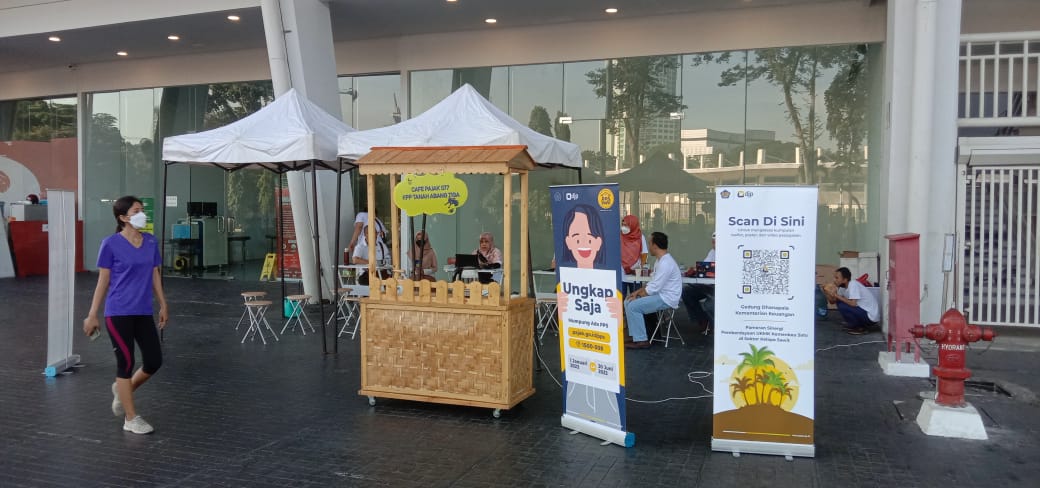 Kantor Wilayah Direktorat Jenderal Pajak (Kanwil DJP) Jakarta Pusat bekerjasama dengan Kantor Pelayanan Pajak (KPP) Pratama Jakarta Tanah Abang Tiga membuka pojok pajak di kawasan Gelora Bung Karno (GBK), Jakarta Pusat (Jumat, 10/6).