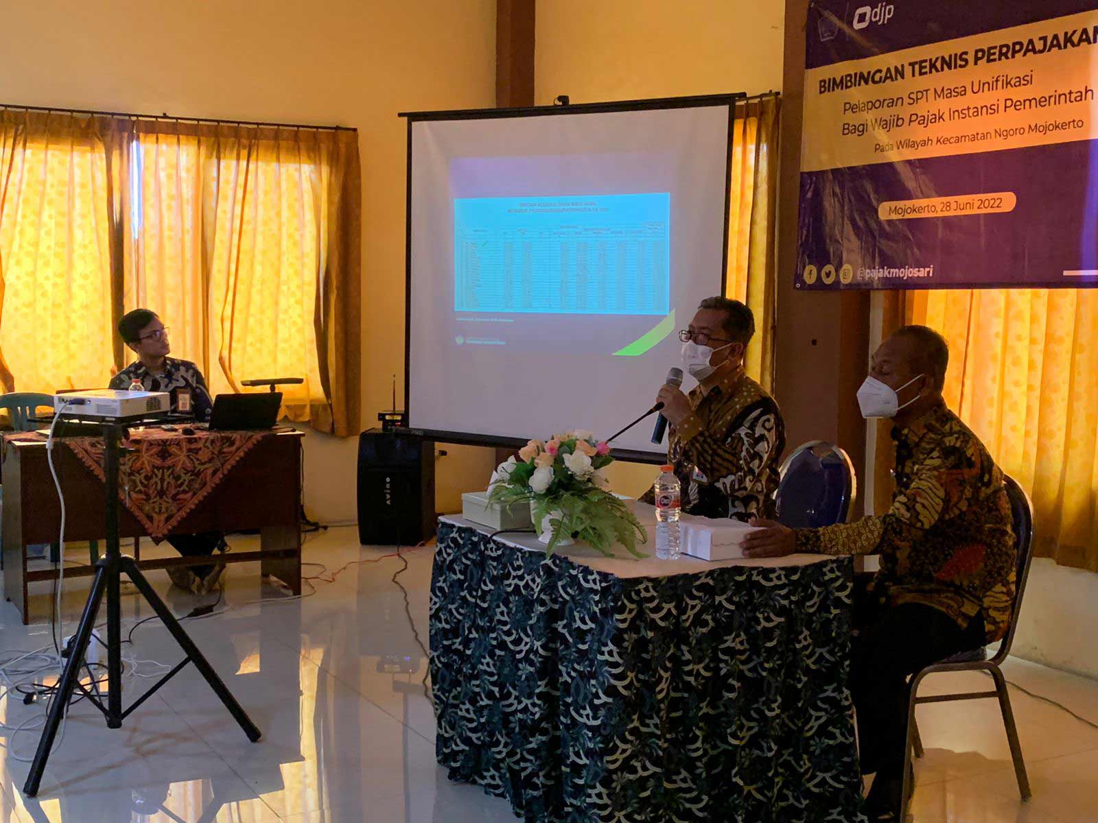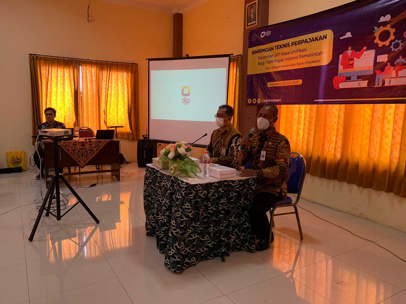 Kantor Pelayanan, Penyuluhan, dan Konsultasi Perpajakan (KP2KP) Mojosari bekerja sama dengan Kecamatan Ngoro mengadakan Bimbingan Teknis (Bimtek) Surat Pemberitahuan (SPT) Unifikasi yang diikuti sembilan belas perwakilan yang ada di Kecamatan Ngoro. Kegiatan edukasi dalam rangka meningkatkan kepatuhan pelaporan SPT Masa Unifikasi pemerintah desa di Kecamatan Ngoro ini dilaksanakan di Aula Kecamatan Ngoro, Kabupaten Mojokerto (Selasa, 28/6).