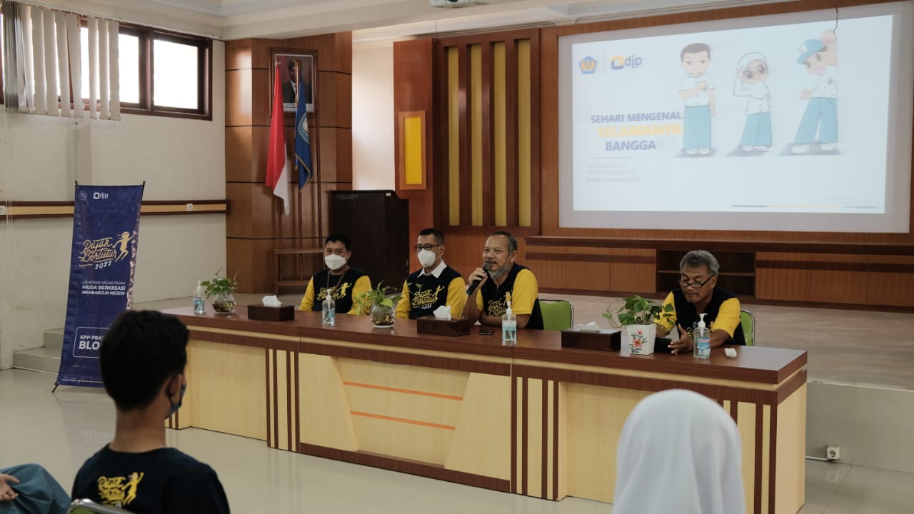 Kantor Pelayanan Pajak (KPP) Pratama Blora menyelenggarakan kegiatan Pajak Bertutur di Sekolah Menengah Atas (SMA) Negeri 2 Blora, Kabupaten Blora (Kamis, 18/8). Kegiatan ini digelar di aula SMA Negeri 2 Blora dan diikuti oleh 60 siswa-siswi serta didampingi oleh guru.