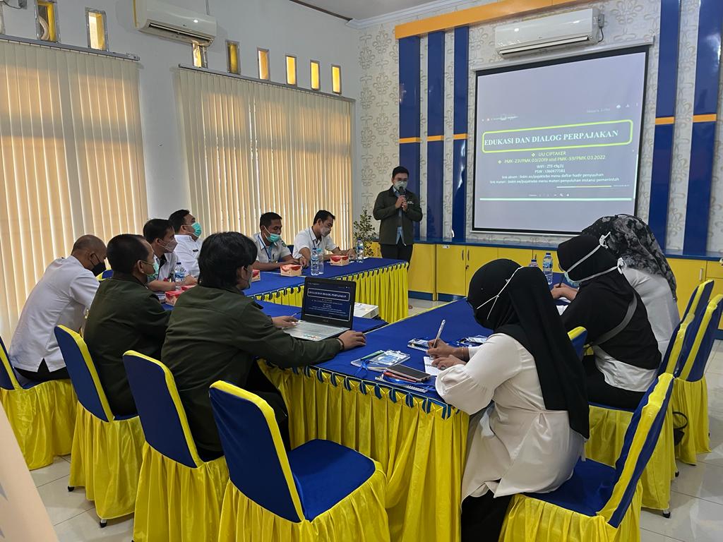 Kantor Pelayanan, Penyuluhan, dan Konsultasi Perpajakan (KP2KP) Muara Tebo melaksanakan Edukasi dan Dialog Perpajakan kepada 20 Puskesmas Kabupaten Tebo di aula KP2KP Muara Tebo (Rabu, 31/8). Materi yang dibahas mengenai Peraturan Menteri Keuangan (PMK) Nomor 59/PMK.03/2022 yang merupakan perubahan atas PMK-231/PMK.03/2019 tentang Kewajiban Perpajakan Instansi Pemerintah.