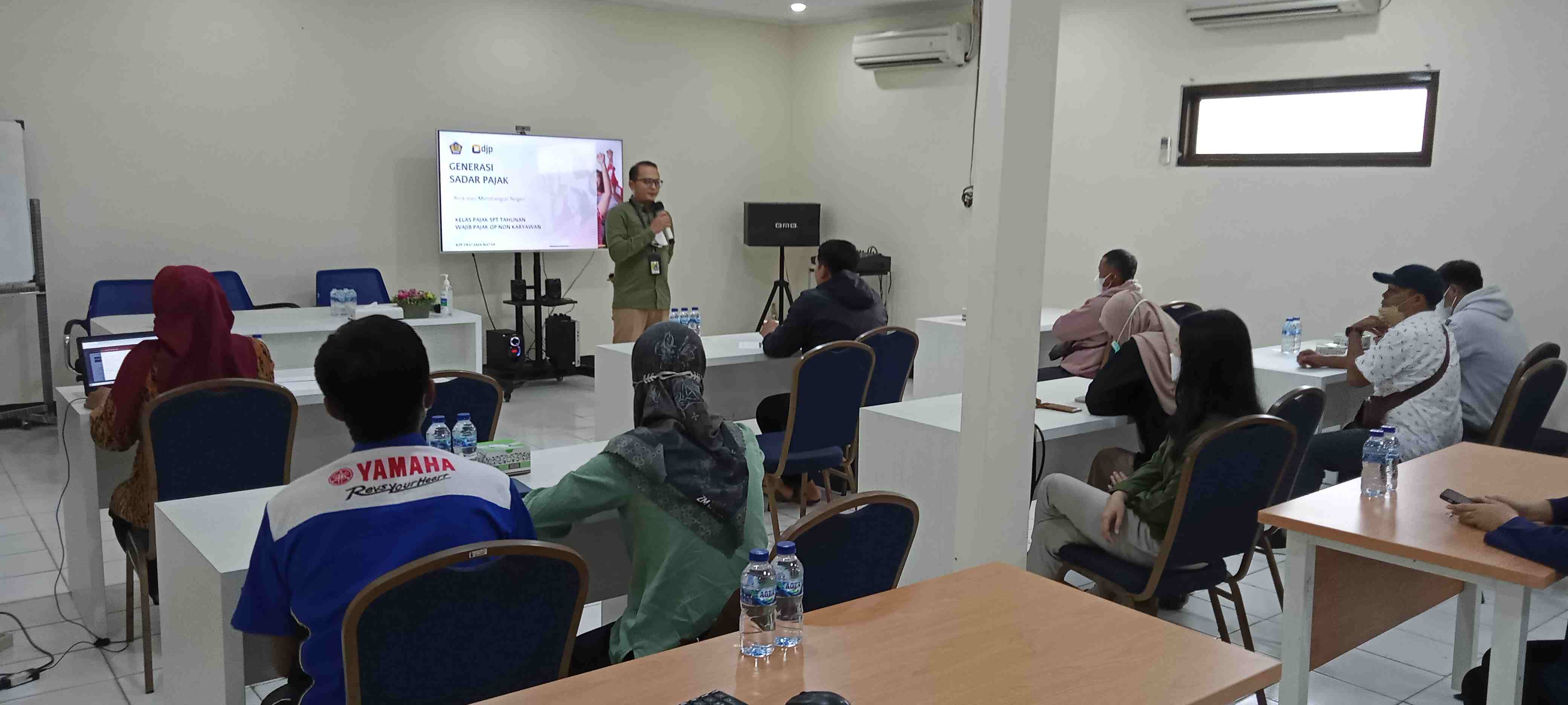Kantor Pelayanan Pajak (KPP) Pratama Natar mengadakan bimbingan teknis dengan mengundang para Wajib Pajak Orang Pribadi non-karyawan yang belum melakukan pelaporan Surat Pemberitahuan (SPT) Tahun pajak 2021 di Aula KPP Pratama Natar (Senin, 27/10).