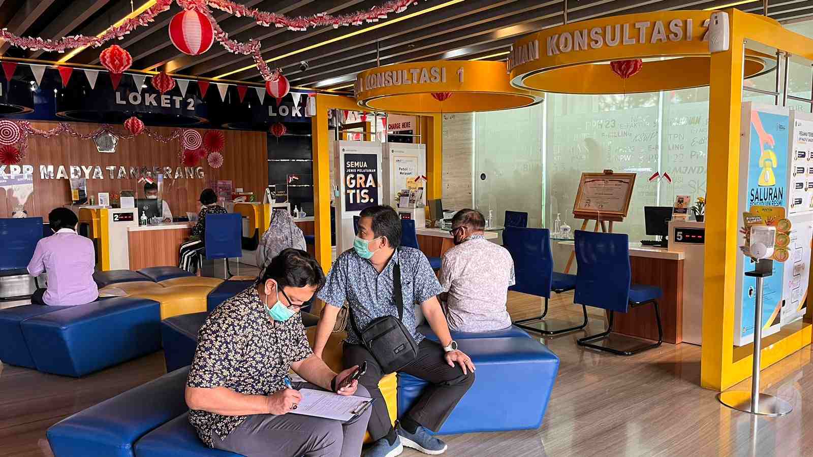 Wajib Pajak mendatangi Kantor Pelayanan Pajak (KPP) Madya Tangerang untuk mencari solusi atas kesalahan input data pembuatan e-Billing kepada petugas Tempat Pelayanan Terpadu (TPT) KPP Madya Tangerang, Kota Tangerang (Senin, 14/11).