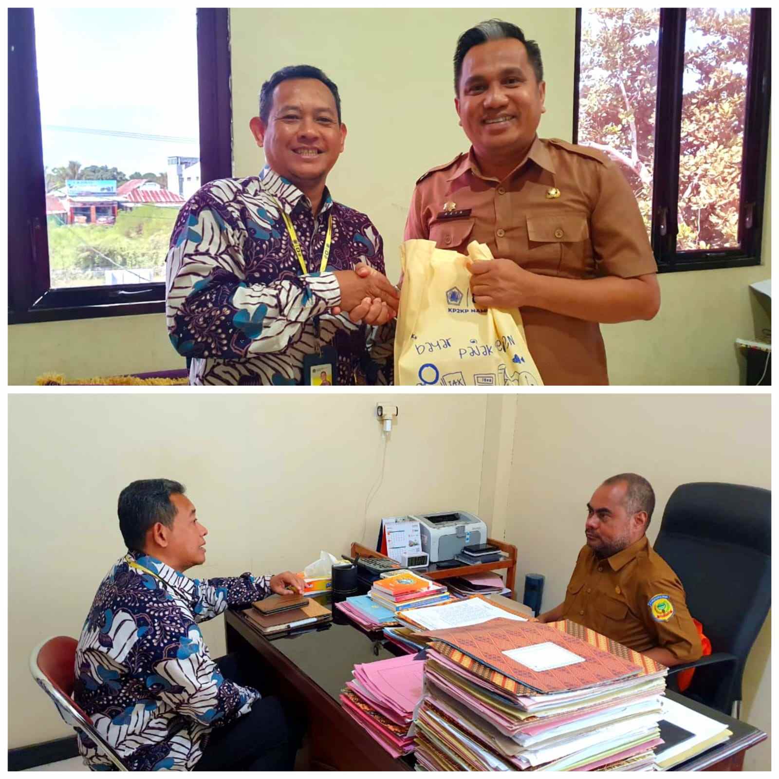 Kantor Pelayanan, Penyuluhan, dan Konsultasi Perpajakan (KP2KP) Namlea melaksanakan kunjungan ke Dinas Pendapatan Daerah (Dispenda) dan Badan Pengelolaan Keuangan dan Aset Daerah (BPKAD) Kabupaten Buru, Maluku (Selasa, 17/1). Dalam kunjungan ini, Kepala KP2KP Namlea Syarifudin didampingi oleh pelaksana KP2KP beraudiensi dengan Kepala Dispenda dan Kepala BPKAD Kabupaten Buru.