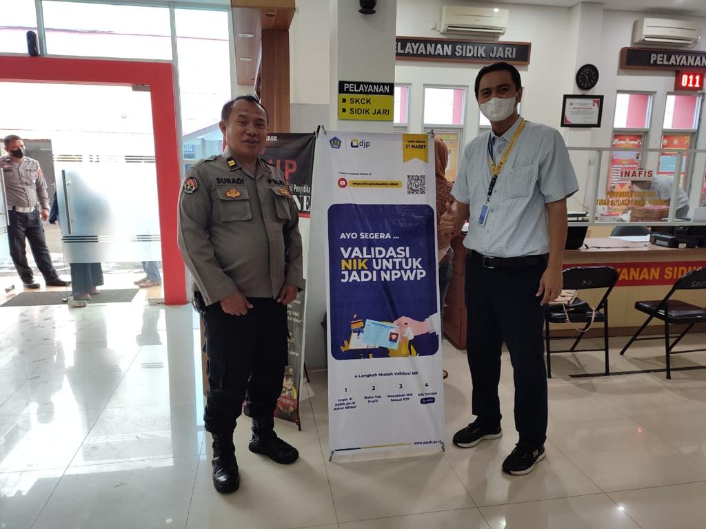 Kunjungan yang berlangsung pada pukul 10.00 WITA dan disambut langsung oleh Inspektur Polisi Satu (IPTU) Suradi selaku Kepala Sub Seksi Penmas (Penerangan Masyarakat) Seksi Hubungan Masyarakat Polres Berau ini memiliki tujuan yakni menyebarluaskan informasi mengenai pemadanan Nomor Induk Kependudukan (NIK)-Nomor Pokok Wajib Pajak (NPWP) yang dapat dilakukan melalui laman DJP Online.