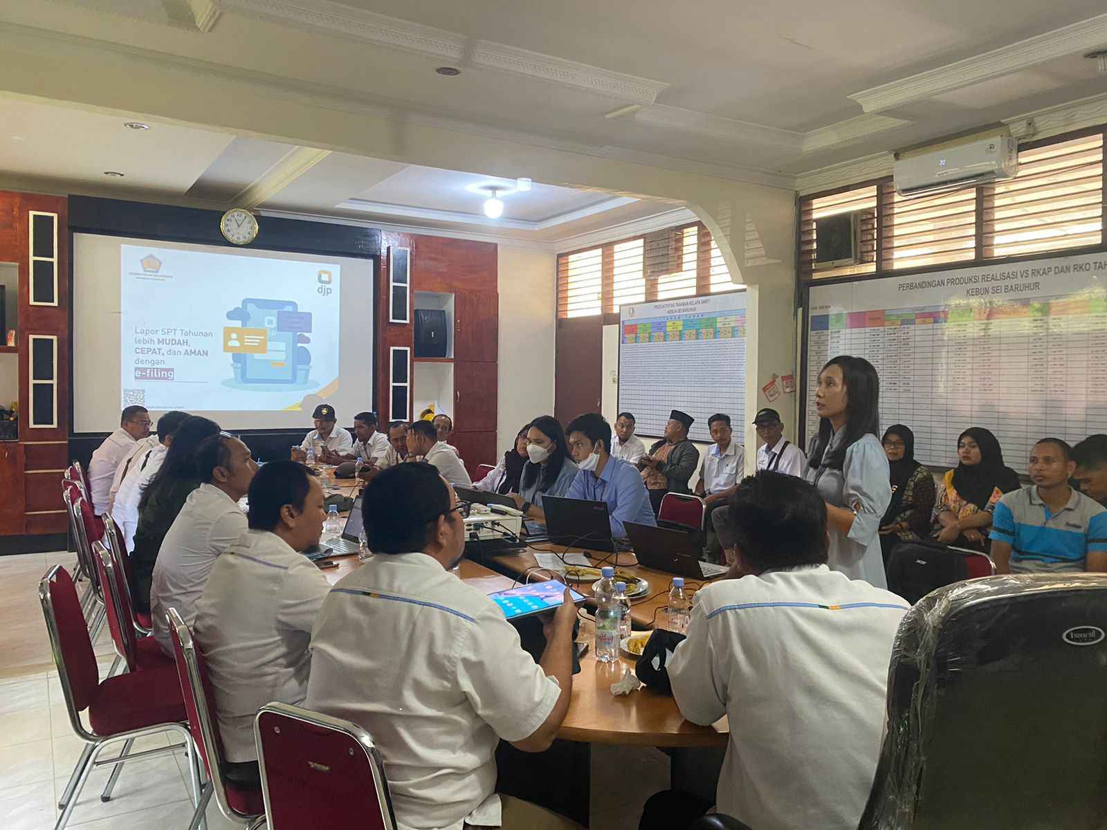 Kantor Pelayanan Pajak (KPP) Pratama Rantau Prapat mengadakan kegiatan edukasi di Kantor PT Perkebunan Nusantara (PTPN) III Kebun Sei Baruhur di Simpang Cagar Alam Desa Beringin Jaya, Kecamatan Torgamba Rantau Selatan, Kabupaten Labuhan Batu Selatan, Sumatera Utara (Rabu, 15/2).