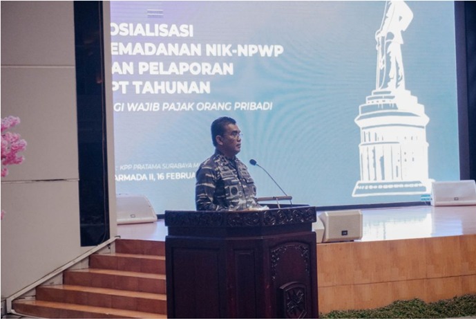 Kantor Pelayanan Pajak (KPP) Pratama Surabaya Mulyorejo mengadakan kegiatan sosialisasi Pemadanan NIK menjadi NPWP dan penyampaian SPT Tahunan PPh yang diadakan di Markas Komando Armada II (Koarmada II) di Surabaya (Kamis, 16/2). Acara ini dihadiri langsung oleh Panglima Koarmada II Laksamana Muda TNI dr. T.S.N.B. Hutabarat, M.M.S. bersama Kepala Kantor Wilayah Direktorat Jenderal Pajak Jawa Timur I (Kanwil DJP Jatim I) P.M. John L. Hutagaol.