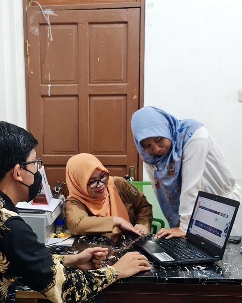 Bendahara Dinas Perkimtan Kabupaten Katingan menyimak dan mengikuti panduan teknis pelaporan SPT Masa menggunakan e-Bupot Instansi Pemerintah dengan dipandu oleh Tim KP2KP Kasongan.