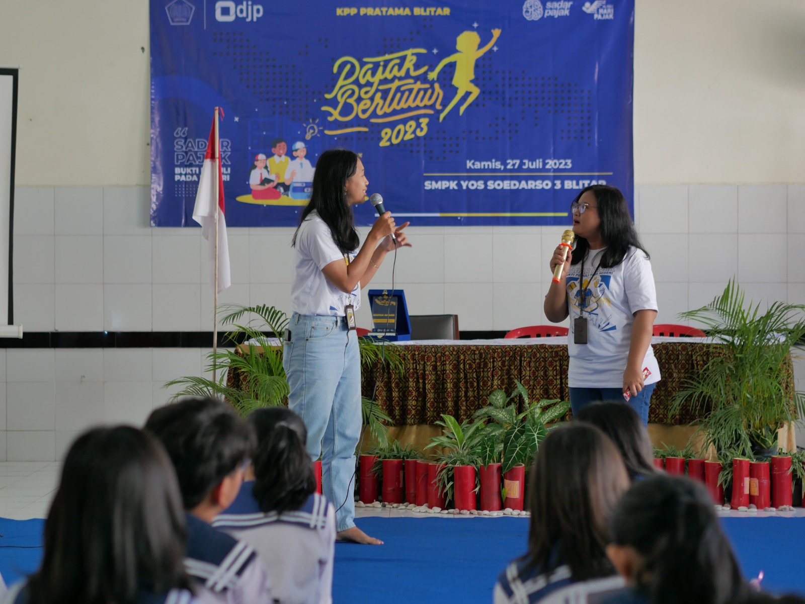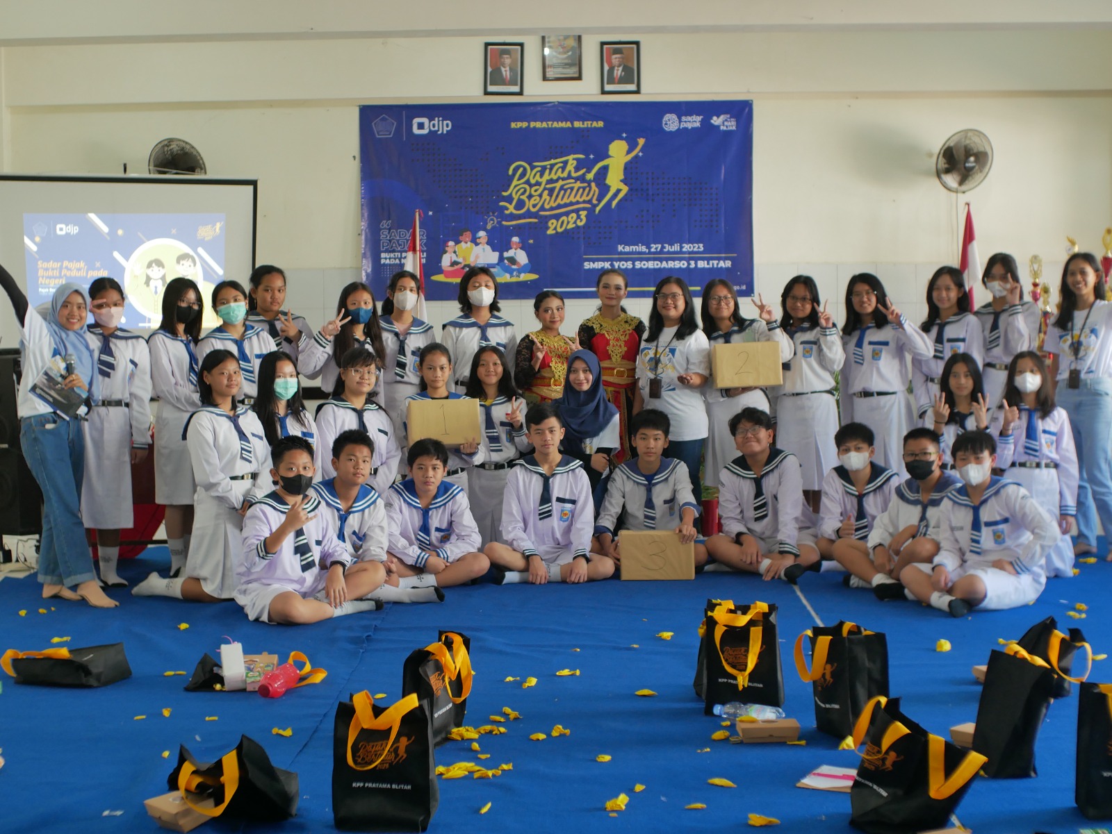 “Kita kenalan sama pajak sambil bermain ya,” ujar Pricillia, anggota tim penyuluh Kantor Pelayanan Pajak (KPP) Pratama Blitar dalam kegiatan Pajak Bertutur yang dilakukan di Aula Sekolah Menengah Pertama (SMP) Katolik Yos Soedarso 3, Blitar (Jumat 27/7). Pajak Bertutur kali ini diikuti oleh 30 siswa dari perwakilan kelas 7, 8, dan 9 SMPK Yos Sodaerso 3.