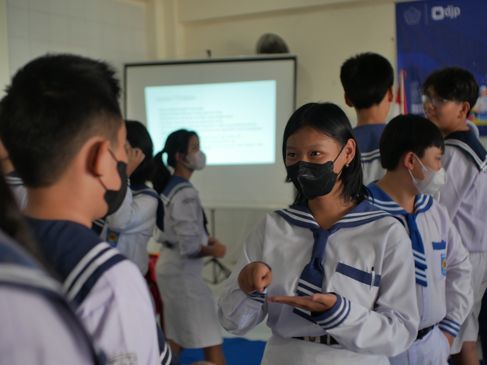 Pengenalan pajak dilanjutkan dengan penyampaian materi peran penting pajak dalam kehidupan berbangsa dan bernegara. Kemudian, peserta diajak untuk bermain teka-teki silang (TTS) terkait materi yang telah disampaikan. Namun, untuk mendapatkan pertanyaan TTS, peserta harus mengambil dan memecahkan balon yang sudah disiapkan panitia. Peserta juga diajak bermain estafet tebak gaya. Kata yang dimainkan berhubungan dengan fungsi pajak. Salah satunya, peserta diminta memperagakan kata “jalan raya” kepada anggota kelompoknya. Namun anggota kelompoknya tidak dapat menebak dengan benar. “Bengkel gergaji,” tebak anggota kelompok terakhir saat melihat temannya menjelaskan kata “jalan raya” dengan menggerakan tangannya ke depan dan ke belakang.