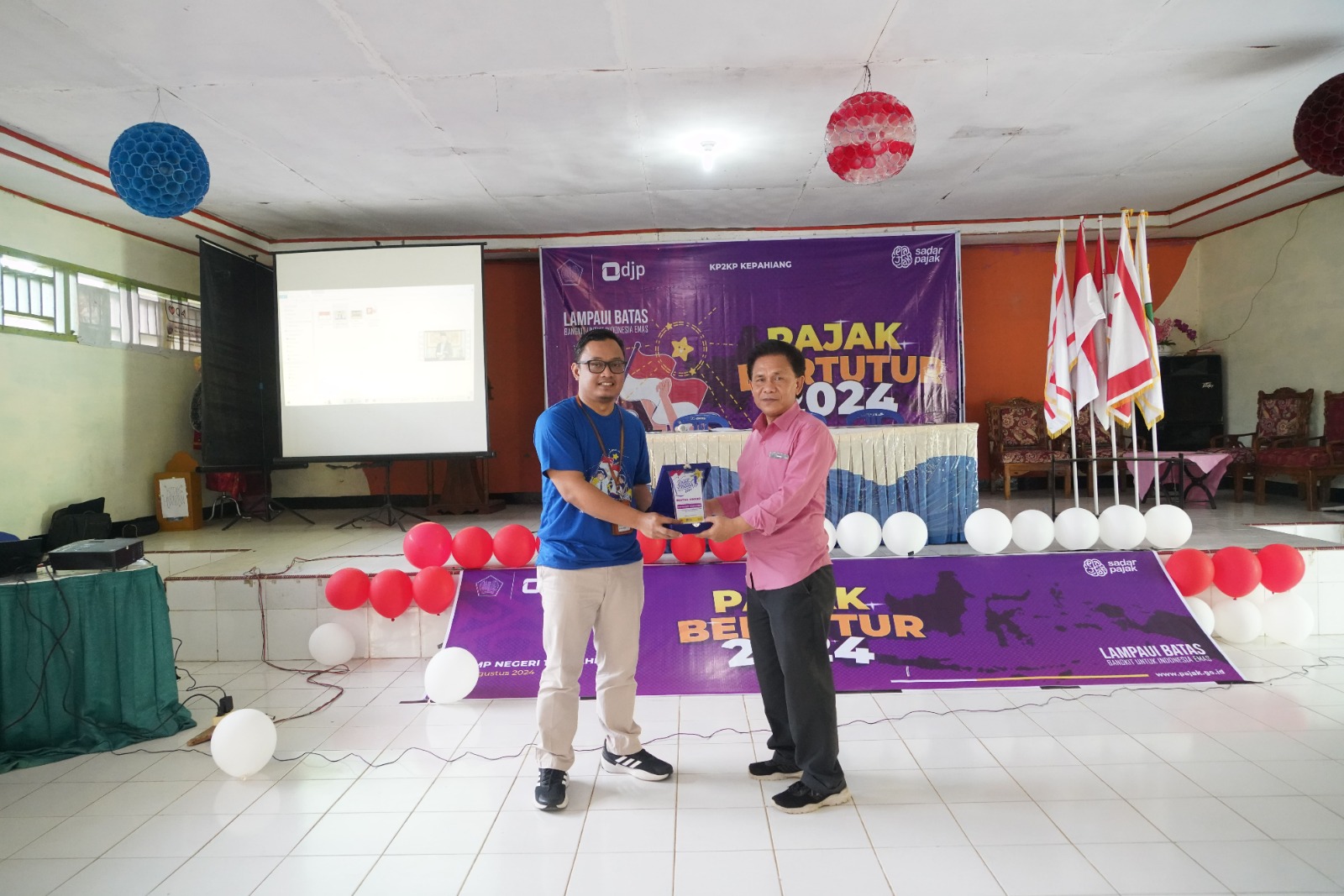 Kantor Pelayanan, Penyuluhan, dan Konsultasi Perpajakan (KP2KP) Kepahiang telah melaksanakan Pajak Bertutur 2024 di Sekolah Menengah Pertama (SMP) Negeri 1 Kepahiang yang berlokasi di Jl. Kihajar Dewantara No. 1 Pensiunan, Kecamatan Kepahiang, Kabupaten Kepahiang, Provinsi Bengkulu (Rabu, 7/8). Bertempat di aula SMP Negeri 1 Kepahiang, acara dimulai pukul 08.00 WIB dihadiri oleh pejabat sekolah, guru dan 100 siswa/i SMP Negeri 1 Kepahiang.