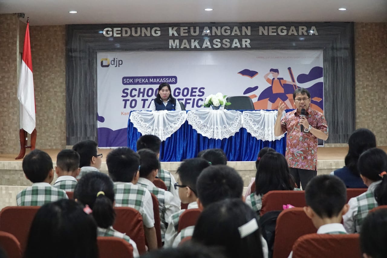 Kanwil DJP Sulawesi Selatan, Barat, dan Tenggara (Sulselbartra) menerima kunjungan dari siswa-siswi pelajar SDK IPEKA Makassar pada kegiatan School Goes To Tax Office (Kamis, 17/10). Acara dilangsungkan di aula lantai enam GKN Makassar dengan diikuti 140 siswa-siswi pelajar SDK IPEKA Makassar didampingi para guru dan kepala sekolah.