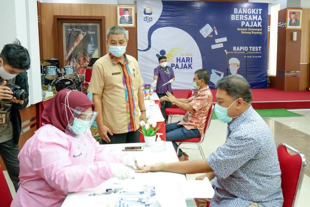 Dalam rangka pencegahan penularan Covid-19, Kanwil DJP Kalimantan Barat bekerja sama dengan Dinas Kesehatan Kota Pontianak menyelenggarakan rapid test kepada seluruh pegawai Kanwil.