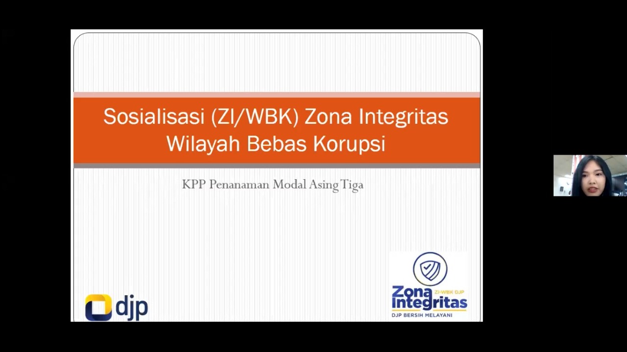 Dalam kesempatan ini juga Tim Zona Integritas KPP PMA Tiga memberikan sosialisasi mengenai program Zona Integritas Wilayah Bebas Korupsi. Budi berharap wajib pajak dapat memberi dukungan dalam membangun program tersebut dengan cara tidak memberikan hadiah dalam bentuk apapun kepada pegawai KPP PMA Tiga.