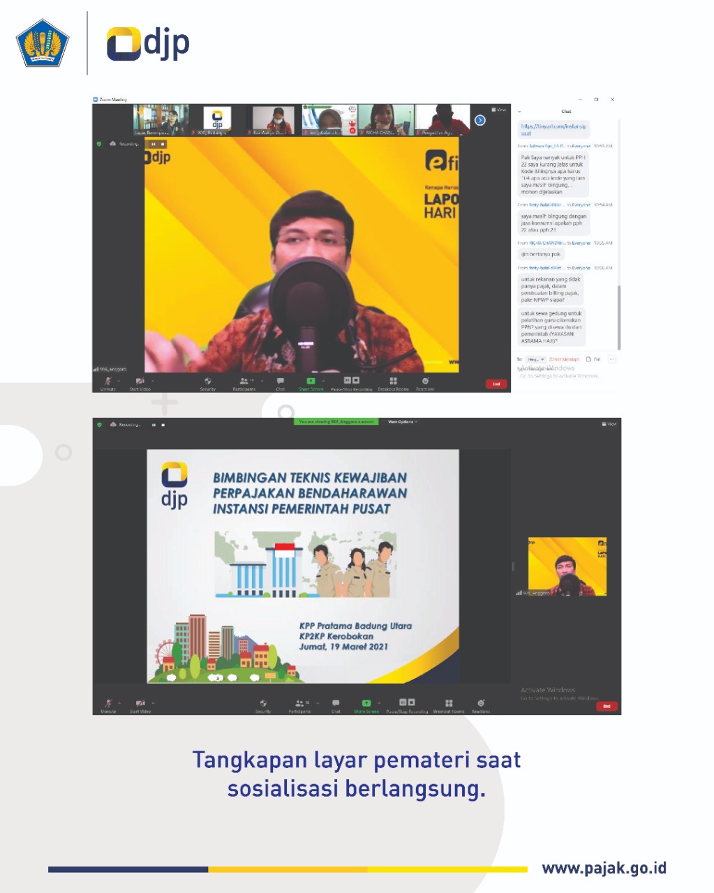 Kantor Pelayanan, Penyuluhan, dan Konsultasi Perpajakan (KP2KP) Kerobokan mengadakan kelas pajak secara daring melalui Zoom Meetings di Bali (Jumat, 19/3). Lebih dari 20 peserta mengikuti acara yang bertema "Kewajiban Perpajakan Bendahara Pusat".