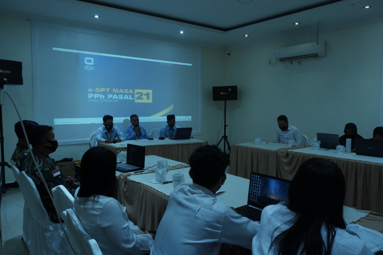 Bimbingan teknis yang diadakan untuk membahas pelaporan Surat Pemberitahuan (SPT) Masa Pajak Penghasilan (PPh) 21 dan pembuatan bukti potong 1721 A2 untuk Aparatur Sipil Negera, Tentara Nasional Indonesia, dan Kepolisian Republik Indonesia.