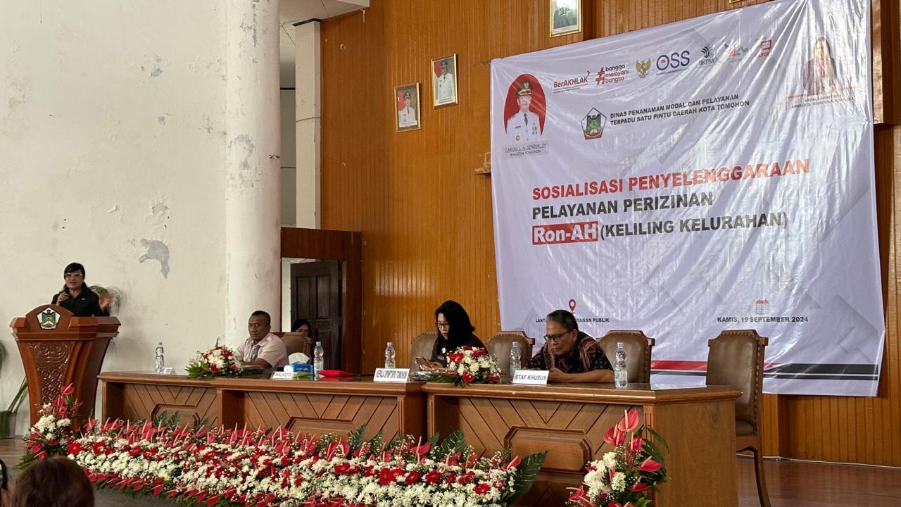 Kantor Pelayanan, Penyuluhan, dan Konsultasi Perpajakan (KP2KP) Tomohon menjadi narasumber dalam kegiatan Sosialisasi Penyelenggaraan Pelayanan Perizinan Ron-AH (Keliling Kelurahan). Kegiatan ini diselenggarakan oleh Dinas Penanaman Modal dan Pelayanan Terpadu Satu Pintu (DPMPTSP) Kota Tomohon. Sosialisasi ini bertempat di Aula Lt. III Mall Pelayanan Publik, Kantor Wali Kota Tomohon, Sulawesi Utara (Kamis, 19/9).