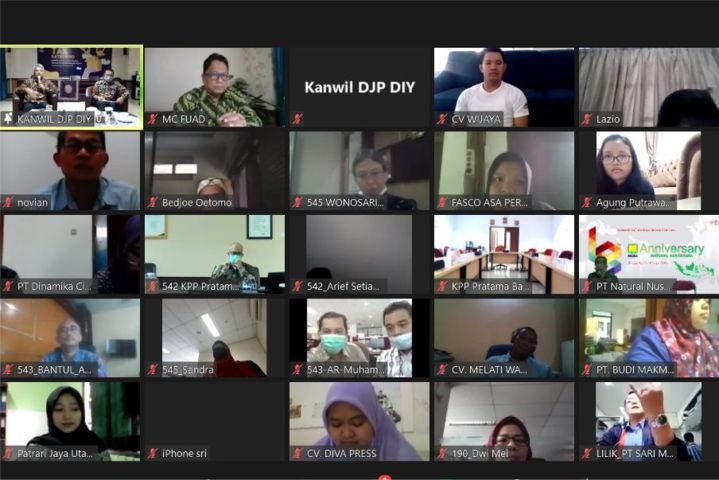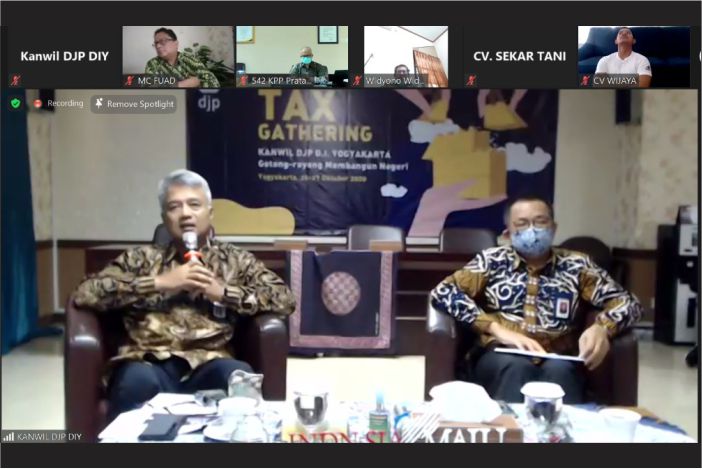 Kanwil DJP D.I. Yogyakarta menyelenggarakan Tax Gathering bersama 200 wajib pajak di wilayah DIY melalui media Zoom Meeting di Yogyakarta (Selasa, 27/10). Kegiatan ini diselenggarakan selama dua hari sejak 26 Oktober 2020.