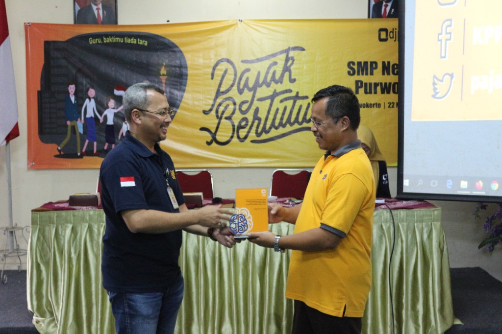 KPP Pratama Purwokerto menggelar Pajak Bertutur kepada siswa SDN 2 Purwokerto Lor, SMPN 1 Purwokerto, dan SMK Diponegoro 3 Kedungbanteng, Kabupaten Purworejo (Jumat, 22/11). Kegiatan ini diikuti oleh 245 siswa terpilih dari masing-masing sekolah. Antusias para peserta terlihat dengan aktifnya saat acara berlangsung baik dalam penyampaian materi dan kuis yang diberikan.