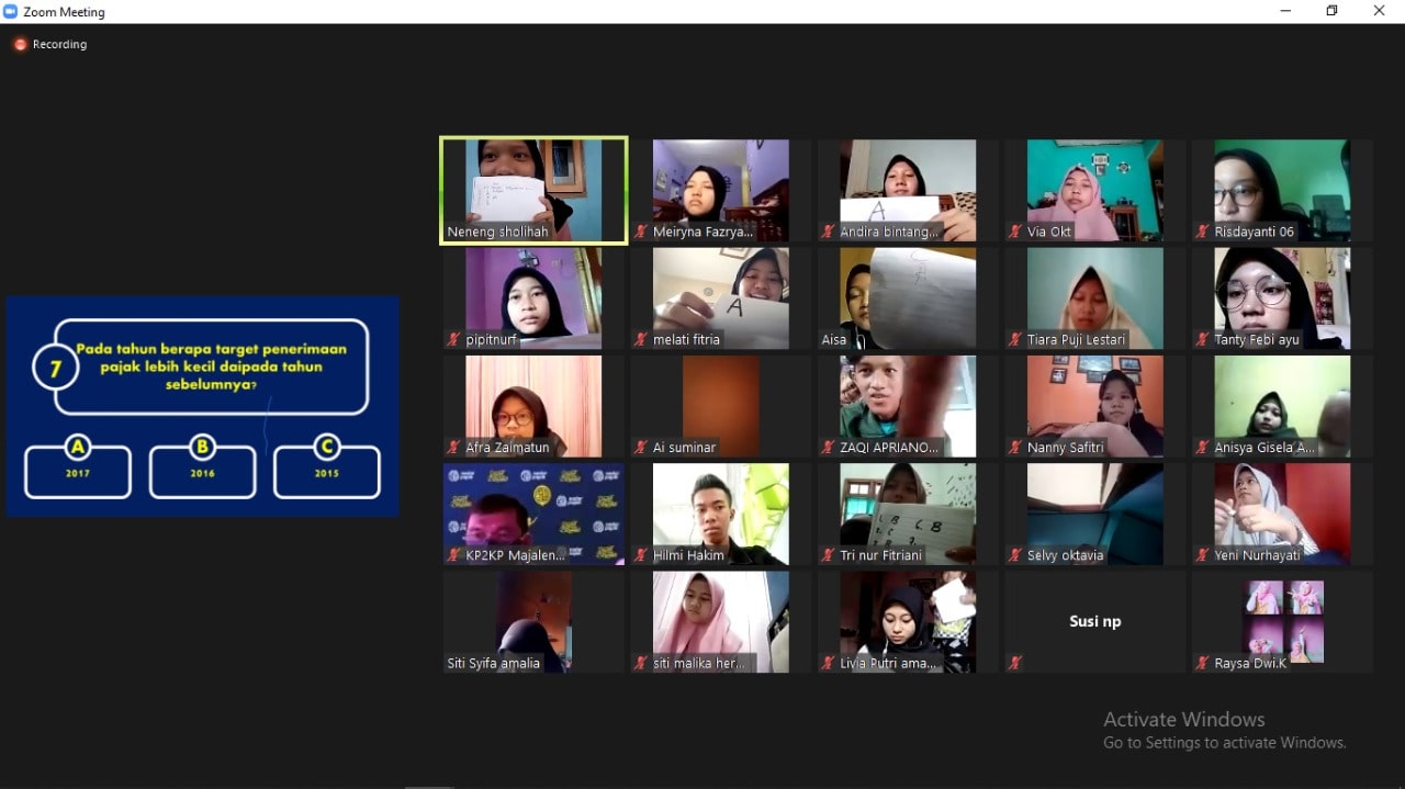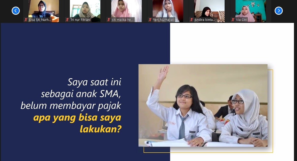 KPP Mikro Majalengka menyelenggarakan acara Pajak Bertutur melalui media Zoom di KPP Mikro Majalengka (Rabu, 15/7). Sejumlah 27 siswa SMK Negeri 1 Kadipaten mengikuti kegiatan yang merupakan rangkaian peringatan Hari Pajak yang jatuh pada tanggal 14 Juli.