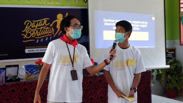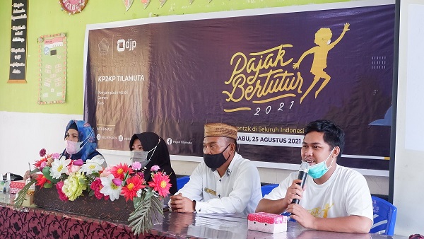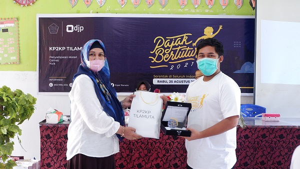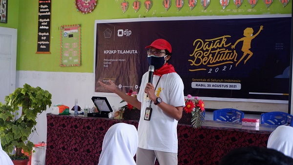 Kantor Pelayanan, Penyuluhan, dan Konsultasi Perpajakan (KP2KP) Tilamuta bersama Sekolah Menengah Pertama (SMP) Negeri 4 Tilamuta mengadakan kegiatan Pajak Bertutur di Ruang Kelas SMP Negeri 4 Tilamuta, kabupaten Boalemo, Gorontalo (Rabu, 25/8). Kegiatan Pajak Bertutur tahun 2021 yang diselenggarakan kali ini mengambil tema “Sehari Mengenal Selamanya Bangga” dan para peserta yang hadir sebanyak 30 siswa SMP Negeri 4 Tilamuta.