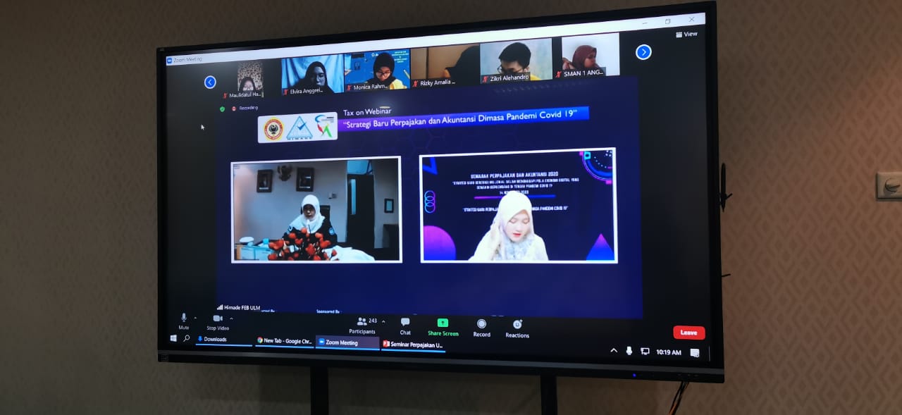 Tax Center Universitas Lambung Mangkurat mengadakan acara Seminar Semarak Perpajakan dan Akuntansi 2020. Seminar ini digelar secara daring dengan tema Strategi Baru Generasi Milenial Dalam Menghadapi Pola Ekonomi Digital yang Semakin Berkembang di Tengah Pandemi Covid-19. Seminar ini mengundang Kanwil DJP Kalselteng sebagai narasumber yang dilansungkan secara langsung di Banjarmasin (Sabtu,14/11)