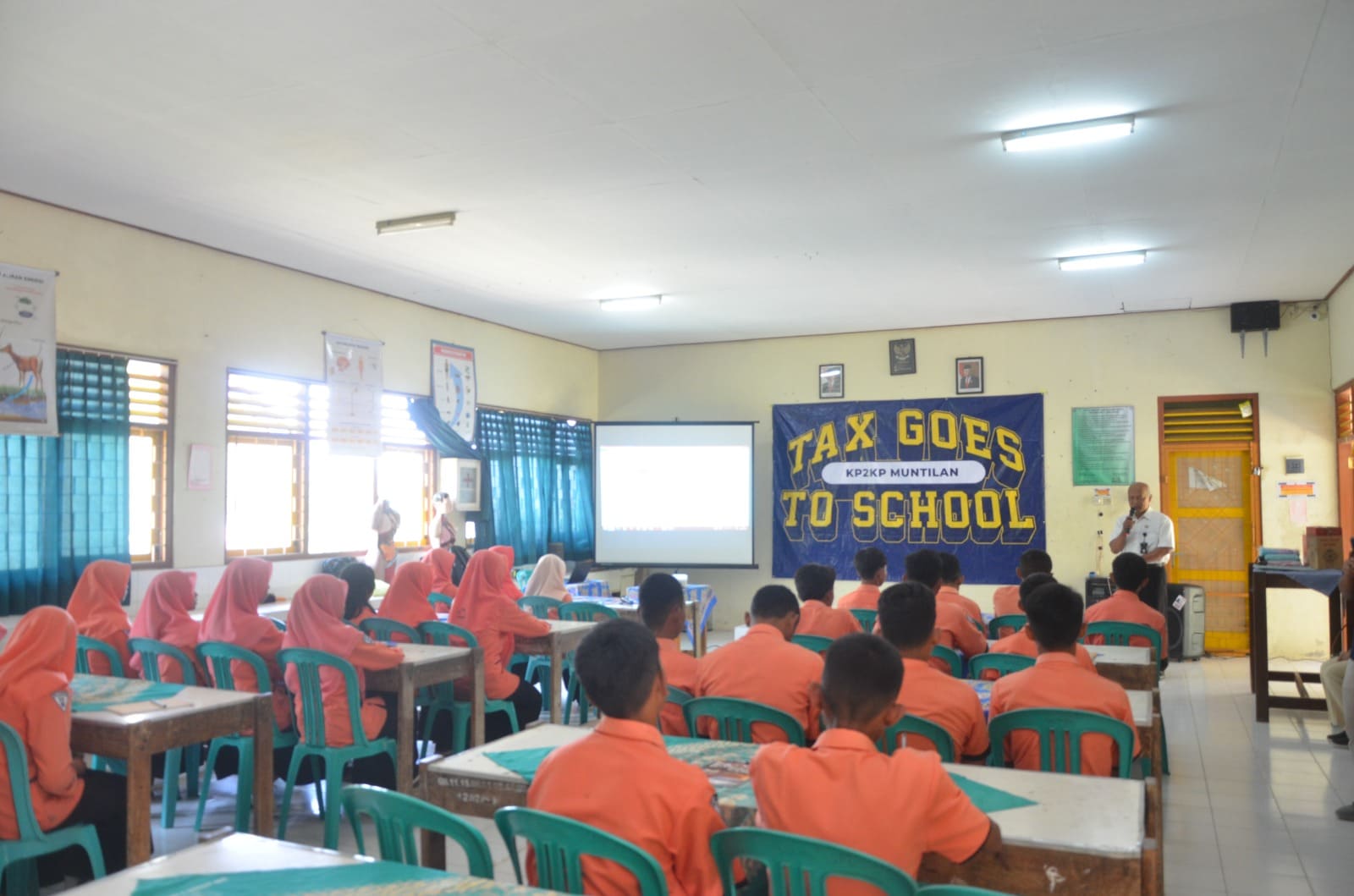 Kantor Pelayanan, Penyuluhan, dan Konsultasi Perpajakan (KP2KP) Muntilan bersama dengan SMP Negeri 2 Sawangan menyelenggarakan kegiatan Tax Goes to School 2023 secara langsung di Aula SMP Negeri 2 Sawangan, Kabupaten Magelang (Rabu, 30/8). Kegiatan ini diikuti oleh 35 siswa dan siswi dari SMP Negeri 2 Sawangan. Tema Tax Goes to School tahun ini adalah "Sadar Pajak Bukti Peduli pada Negeri".