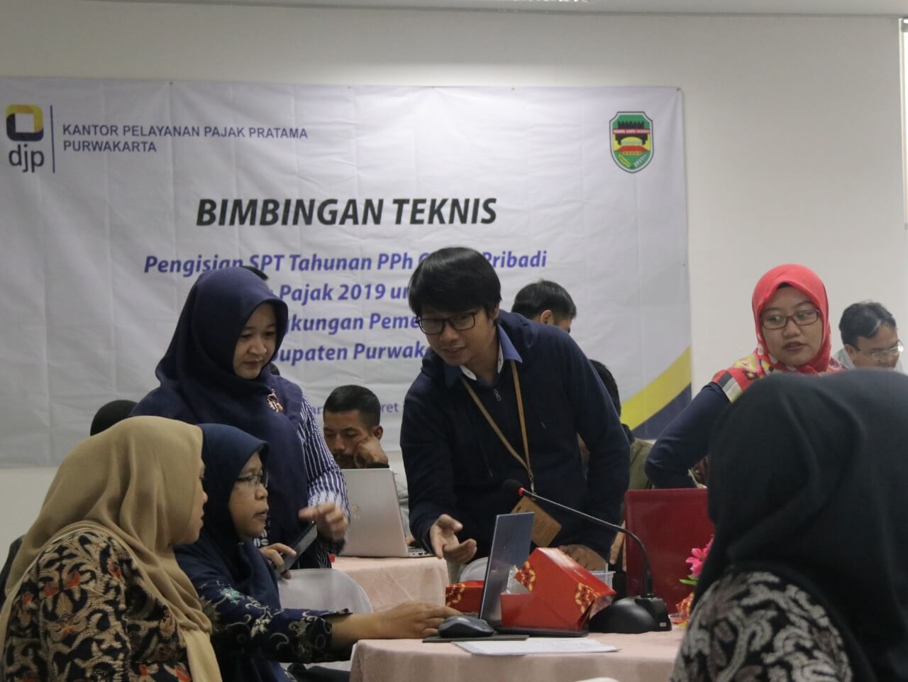 KPP Pratama Purwakarta menyelenggarakan kegiatan Bimbingan Teknis Pengisian SPT Tahunan Orang Pribadi di Lingkungan Pemerintah Kabupaten Purwakarta, bertempat di aula lantai III KPP Pratama Purwakarta (Kamis, 12/3).