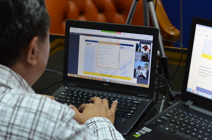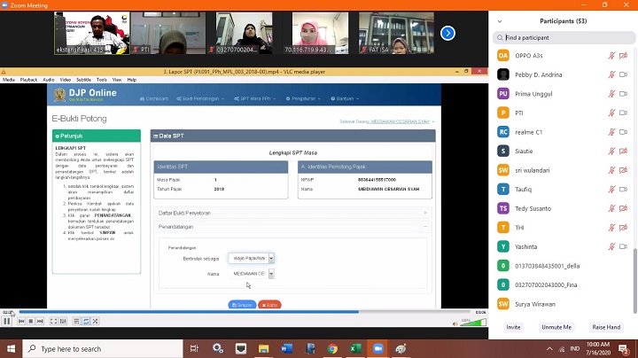 KPP Pratama Cibitung mengikuti sosialisasi e-Bupot melalui konferensi video di KPP Pratama Cibitung (Kamis, 16/7). Sebanyak 50 wajib pajak mengikuti jalannya sosialisasi secara daring ini di tempat masing-masing.