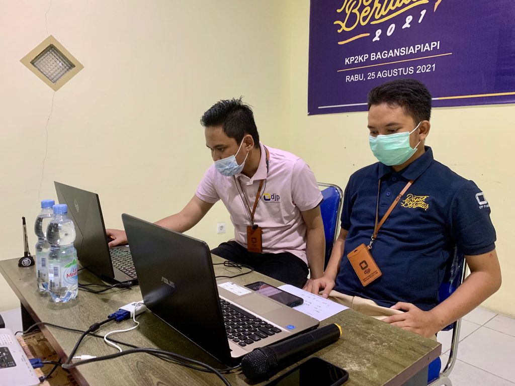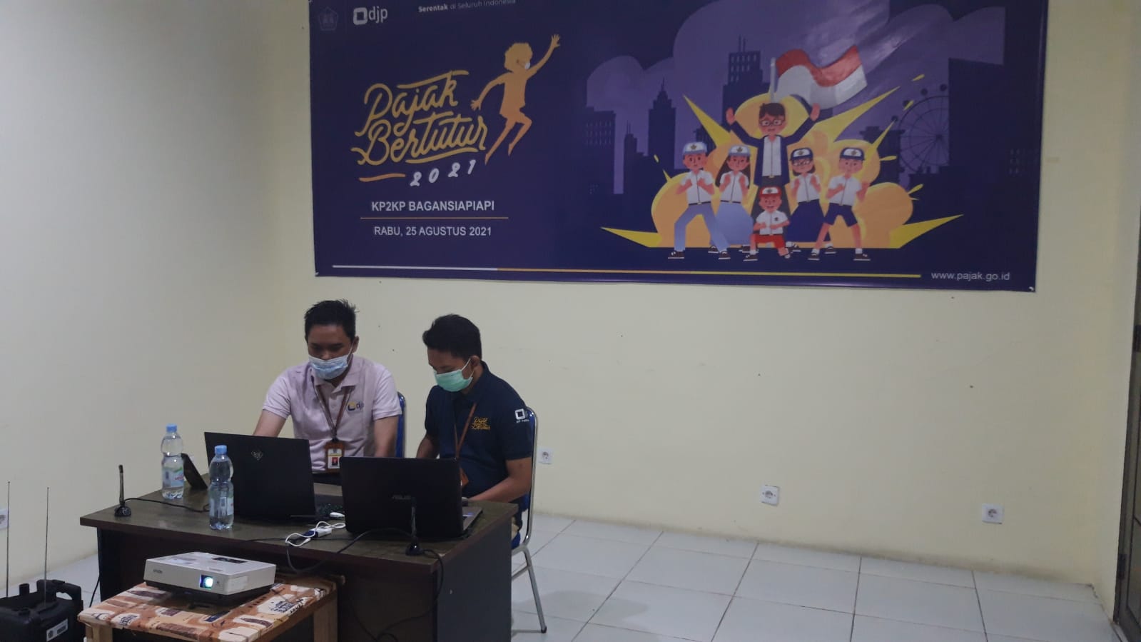 Kantor Pelayanan, Penyuluhan, dan Konsultasi Perpajakan (KP2KP) Bagansiapiapi mengadakan Pajak Bertutur 2021 bersama SMP Bintang Laut Bagansiapiapi secara daring di KP2KP Bagansiapiapi, Kabupaten Rokan Hilir (Rabu,25/8). Kegiatan ini dihadiri oleh 83 peserta yaitu 3 guru dan 80 siswa/i SMP Bintang Laut Bagansiapiapi.