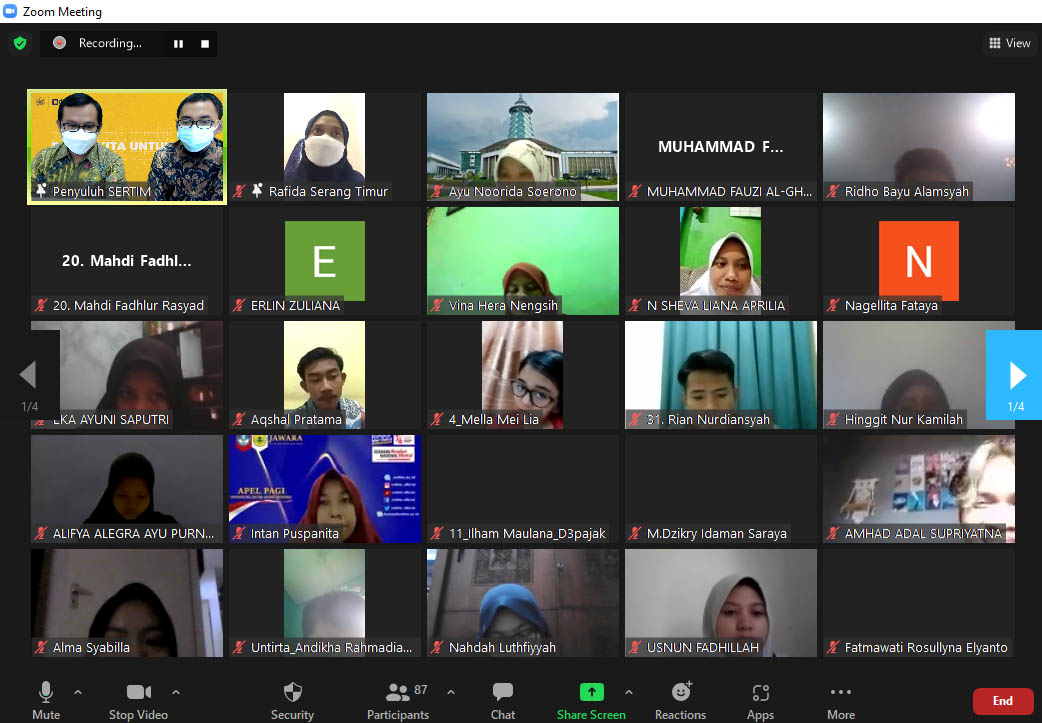 Kantor Pelayanan Pajak (KPP) Pratama Serang Timur mengadakan kelas pajak bersama Universitas Sultan Ageng Tirtayasa (Untirta) dengan tema Insentif pajak bagi Wajib Pajak terdampak Pandemi Covid-19 berdasarkan PMK-82/PMK.03/2021 (Senin, 30/8). Kegiatan ini diselenggarakan secara daring melalui Zoom Meeting dari ruang rapat KPP Pratama Serang Timur, Kabupaten Serang.